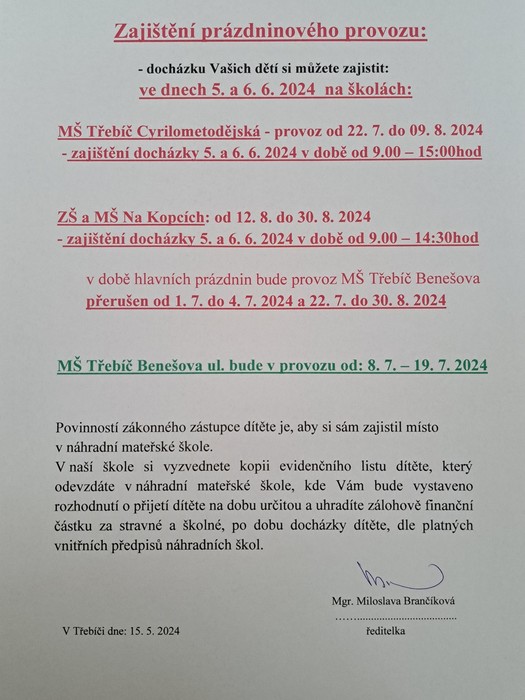 Úvod > Aktuálně > Aktuálně k prázdninovému provozu