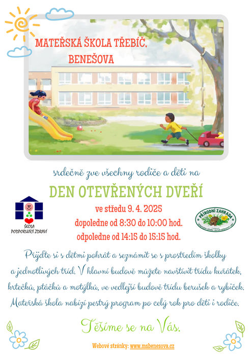 Srdečně zveme děti a rodiče na Den otevřených dveří.