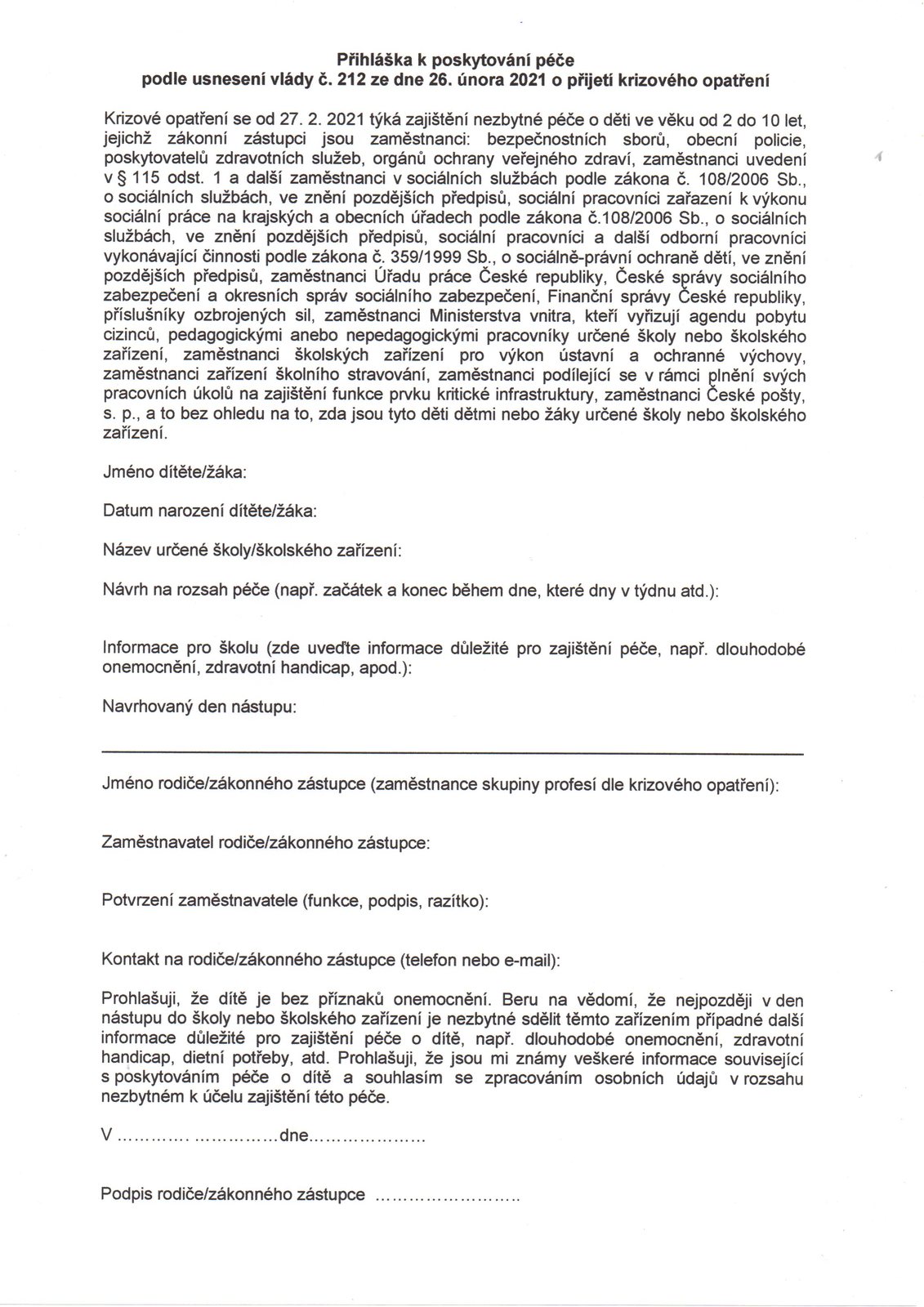 Úvod > Aktuálně > Zrušeno - přihláška k poskytování péče
