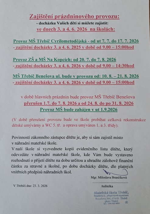 Úvod > Aktuálně > ZAJIŠTĚNÍ PRÁZDNINOVÉHO PROVOZU