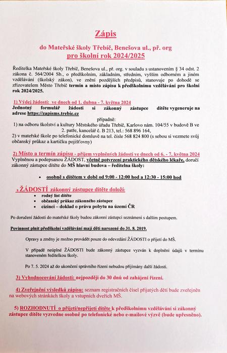 ZÁPIS DO MATEŘSKÉ ŠKOLY