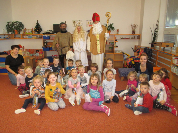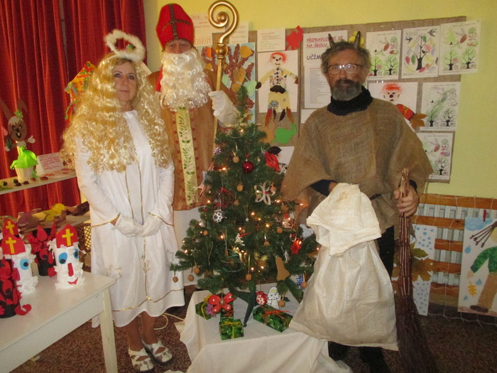 A už tu byl den, kdy přišel Mikuláš s čertem a andělem. Děti jim zazpívaly, v některé třídě zatancovaly, někde pohostoly dobrým "čertovským gulášem". Všichni si zasloužili sladkosti i když někde se objevila i brambora či uhlí, ale čert nikoho neodnesl a to je hlavní.