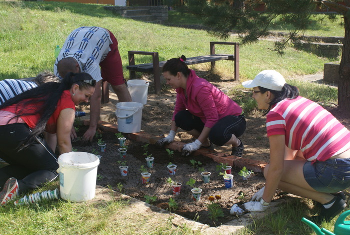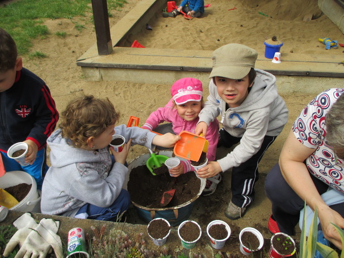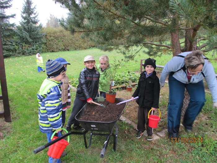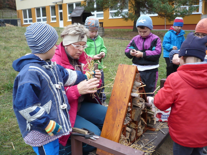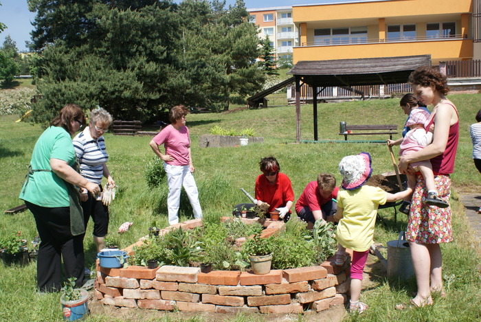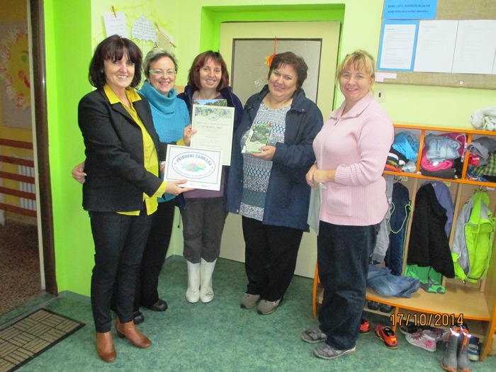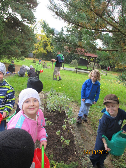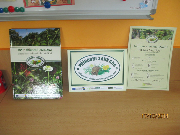 Postupné budování přírodní zahrady, získání certifikátu „Přírodní zahrada“ – v rámci projektu byla nejprve zpracována zahradní architektkou studie, s pomocí děti a rodičů jsme zbudovali přírodní zákoutí pro děti, opletené vyvýšené mlsací ovocné záhonky, bylinkovou spirálu s mokřadem, hmatový smyslový chodníček, oblázkoviště, pískovou jámu, vysadili jsme několik ovocných keřů a stromků, motýlí keře, založili jsme zeleninové záhonky, kompost, byl zbudován vrbičkový tunel a iglú firmou J. Recha a další. Děti se tak nenásilnou, přirozenou a hravou formou učí, co všechno je potřeba k tomu, než vyroste rostlinka, než se vypěstuje jakákoliv potrava, co k životu potřebují drobní živočichové, hmyz a ptáci. A že se na naší zahradě živočichům líbí, svědčí i to, že se zde zabydlely straky, zaječice zde vyvedla své mladé, svůj domov zde našel i ježek.