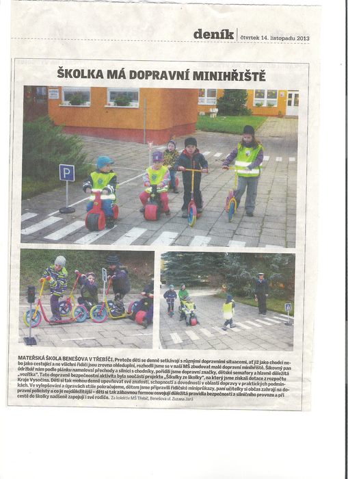 V rámci projektu byla částečně zařízena další ze tříd otevřeným policovým nábytkem s boxy a vybaveny herní námětové koutky, proběhlo cvičení všech dětí na rehabilitačních míčích pod vedením zkušené fyzioterapeutky, byly pořízeny nové cvičební a rehabilitační pomůcky, proběhla hipoterapie dětí (rehabilitační cvičení a jízda na koních) v občanském sdružení Dorado ve Stříteži. Proběhlo také sportovně zábavné odpoledne pro děti a rodiče ke Dni dětí, děti se zúčastnily bezpečnostní preventivní akce na dopravním hřišti, zařídili a vybavili jsme také v naší MŠ malé dopravní minihřiště s fungujícími přenosnými semafory a značkami. Na všechny akce a aktivity byly pořízeny metodické pomůcky, hračky a odměny pro děti.