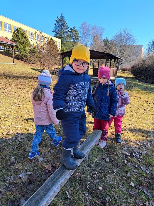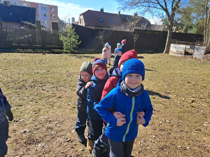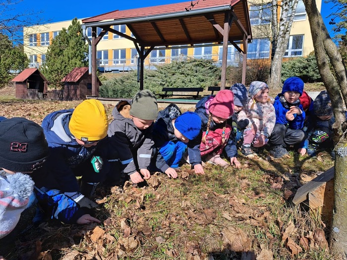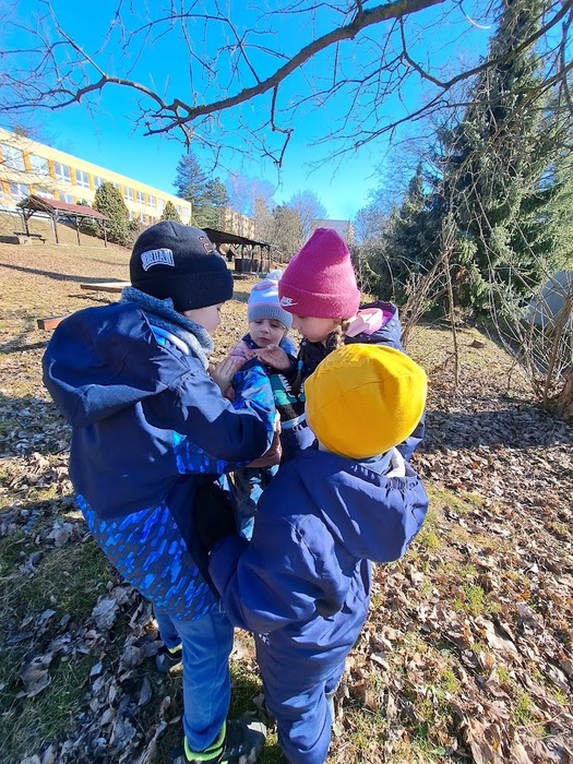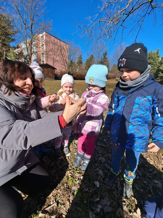 Začátkem března se oteplilo, v přírodní zahradě i jejím okolí se příroda probouzí ze zimního lenošení. S dětmi pozorujeme změny počasí, pozorujeme na vycházkách krásnou modrou oblohu, začínají nás hřát sluneční paprsky. V přírodní zahradě již také rozkvétají první sněženky, vytahují se ze země listy narcisek a tulipánů. Pozorujeme veverky a zajíce, jak skáčou po zahradě. Děti si prohlédly první slunéčka sedmitečné v trávě, posloucháme zvuky ptáků - pěnkavy, sýkorky, hrdličky, kosa pomoci aplikace Birds. Děti si užívají herních prvků v zahradě, zkouší rovnováhu na kladince, poslouchají zvuky různých dřev stromů na dendrofonu, hrají pohybové hry dle vlastních pravidel. S dětmi jsme pozorovali ptačí budku u kompostu v rohu zahrady, ještě se z ptačí budky nic neozývá, je potřeba počkat, až bude ten správný čas na hnízdění. Jaro už se chystá, těšíme se.