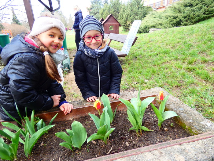 Na zahradě začínají rozkvétat narcisky a tulipánky, fialky, zlatice a japonská Sakura.