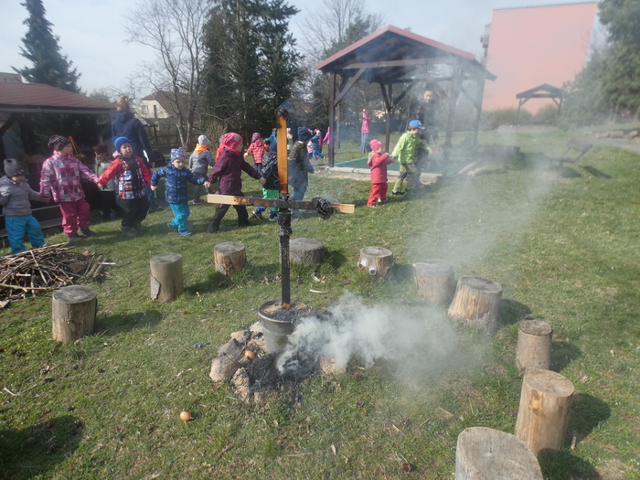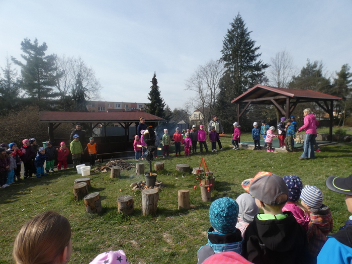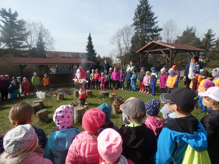 S dětmi jsme jaro přivítali v přírodní zahradě jarní písníčkou, jarními říkadly a básněmi. Tradičně jsme spálili Morenu, která symbolizuje zimu a přivítalí létečko, sluníčko a teplo. Letos bylo pěkné počasí a tak se nikdo nemračil ani zimou netřásl. Možná nás ještě chvilku bude trápit aprílové počasí ale jaro už je tu.Příroda se probouzí v naší krásné zahradě a my s dětmi žasneme a obdivujeme tu krásu rozkvetlých stromů a keřů, prvních tulipánů a narcisek.