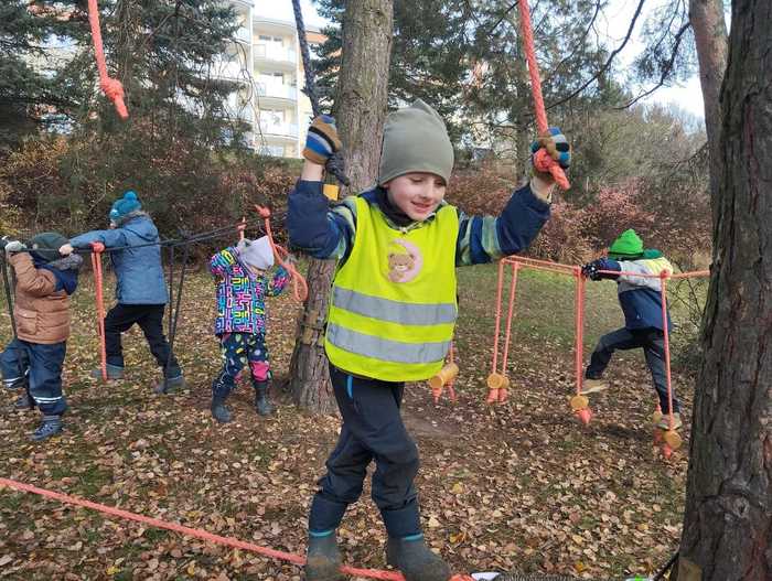 Děti mohly zkoušet svoji obratnost v novém lanovém centru. Malinký brouček - Růměnice pospolná - krásné vybarvení Růměnice obdivovala nebojácná kamarádka ze třídy Rybiček.