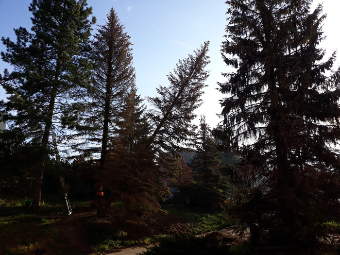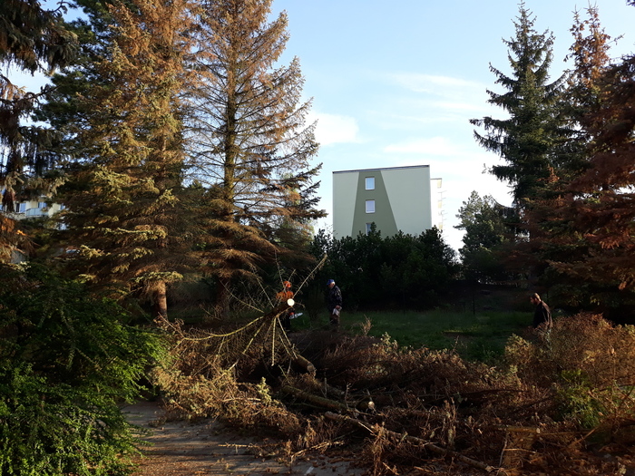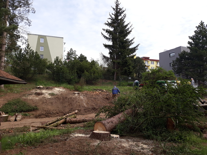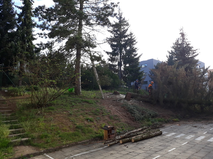 V areálu MŠ byly odstraněny suché stromy, Už dlouhodobě stromy odolávaly suchu a nepřízni počasí. Stromy pomalu usychaly a byly napadeny kůrovcem. Z bezpečnostních důvodů pro nás všechny jsme museli přistoupit ke kácení napadených stromů.