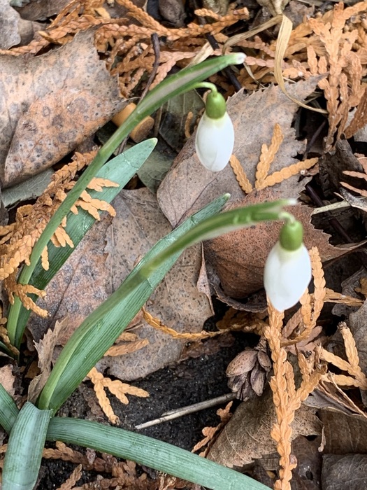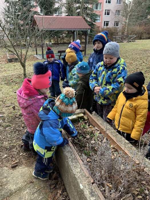 První sněženky jsme s dětmi objevili na zahradě po jarních prázdninách. Společně jsme obdivovali křehkou krásu prvních květů sněženek. Také první ,, ouška " listů tulipánků naslouchají, kdy se oteplí, a vytahují se ze země.