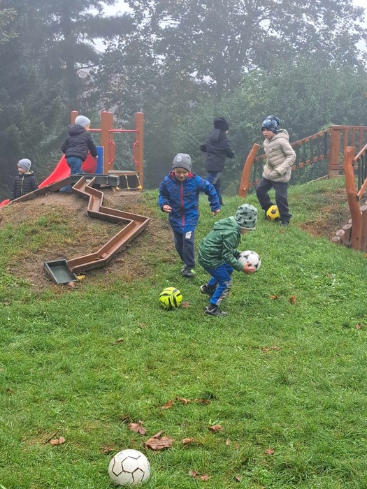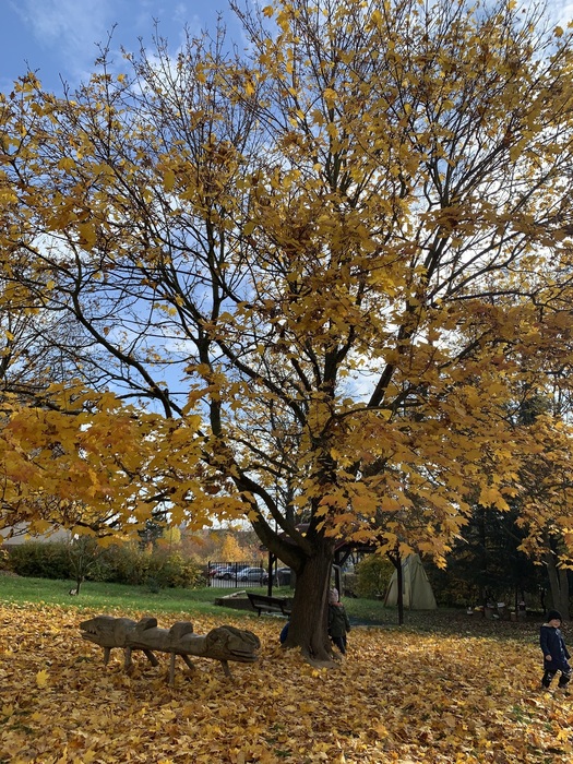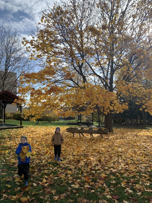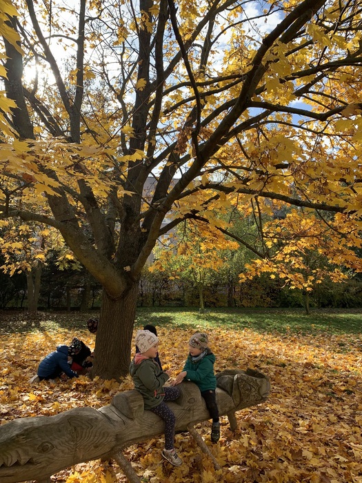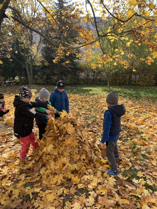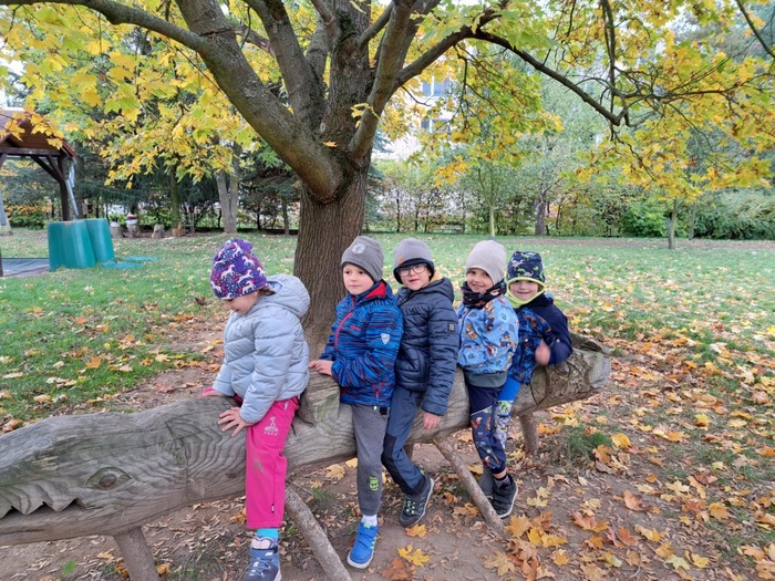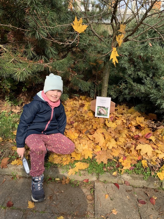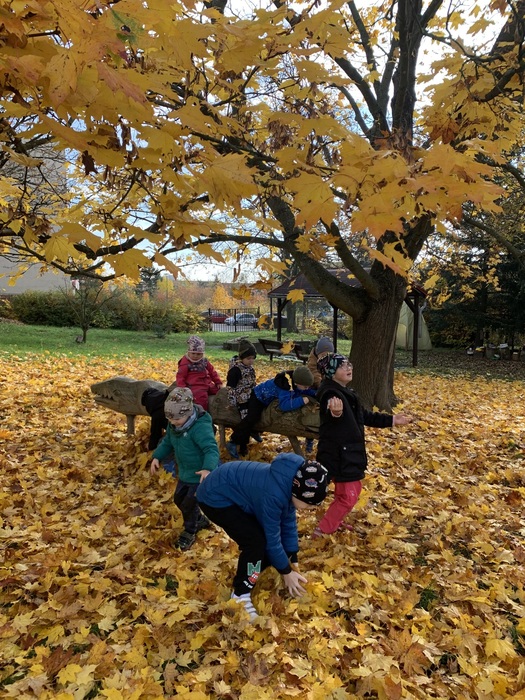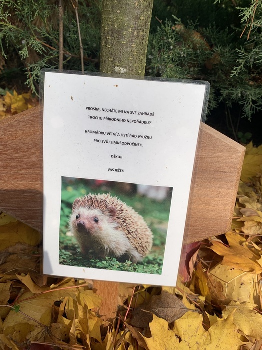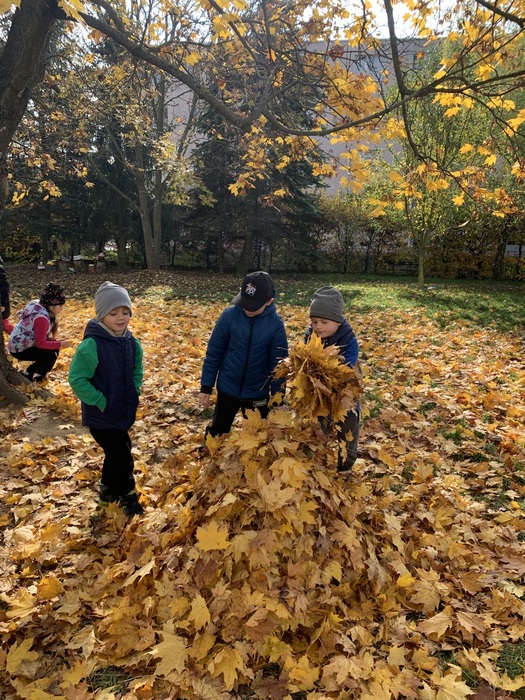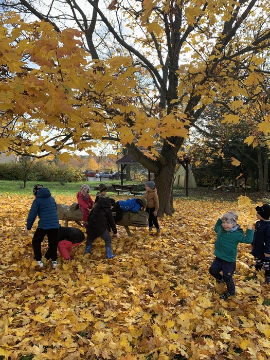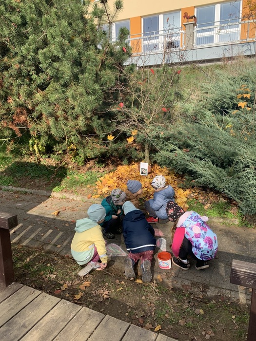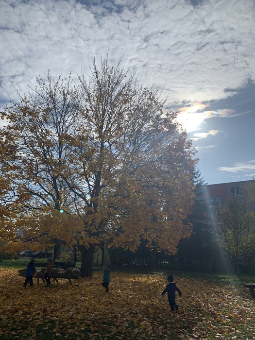 S dětmi jsme obdivovali krásu zbarvených listů javoru. Děti s radostí využívaly barevné listy k volné hře. Během pár dnů se listí javoru krásně zbarvilo a v podzimním slunci se stal javor ozdobou přírodní zahrady. Děti z listů javoru vytvořily domek pro ježka. Umístili jsme s dětmi k domku cedulku s obrázkem ježka. Kdo ví, třeba zrovna sem si ježek namíří na zimní odpočinek anebo jiný živý tvor či tvoreček, bydlící v naší přírodní zahradě. Nápad přišel od dětí spontánně. Děti opět stavěly z listí javoru kopce, hrály si s listím hry dle vlastní fantazie .Podívejte se snámi.