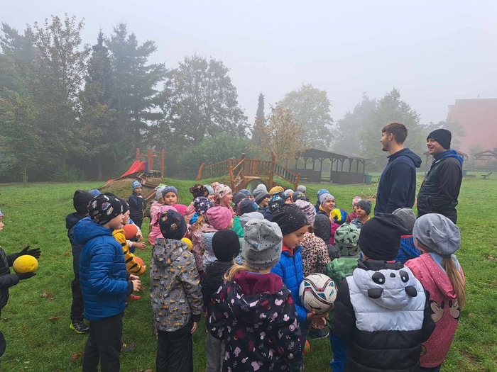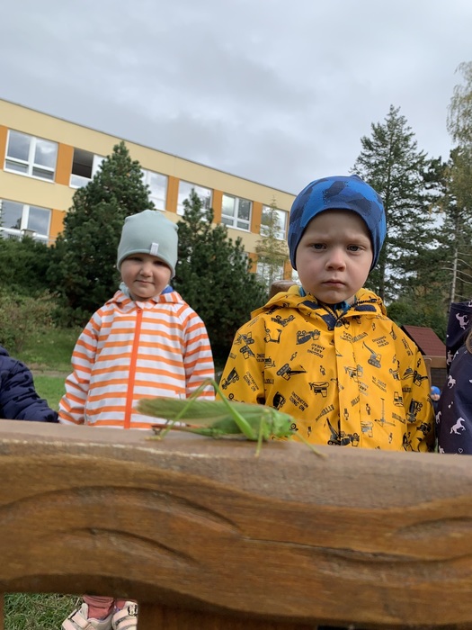Děti našly 10. 10. na zahradě kobylku zelenou. Společně s dětmi jsme ji pozorovali a obdivovali její krásu. Můžete žasnout společně s námi. Podívejte se na fotky. Kobylka zelená je druh hmyzu, obývá stromy a keře. Jedná se poměrně o velký druh, samice dorůstají až 38 mm. Na podzim klade samička kolem 590 vajíček špičatým kladélkem do země, kde vajíčka přezimují většinou 2 -5 zim. Na jaře se líhnou nymfy. Malé nymfy loví mšice, velké nymfy a dospělci loví různý větší hmyz.