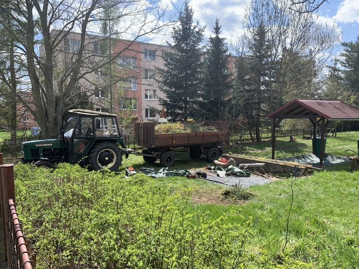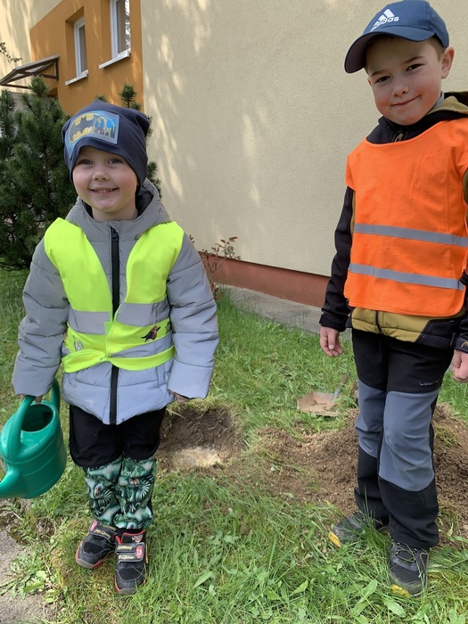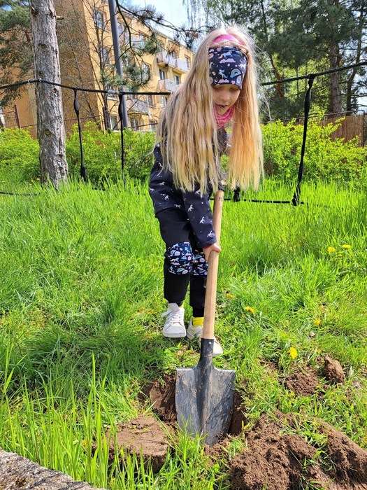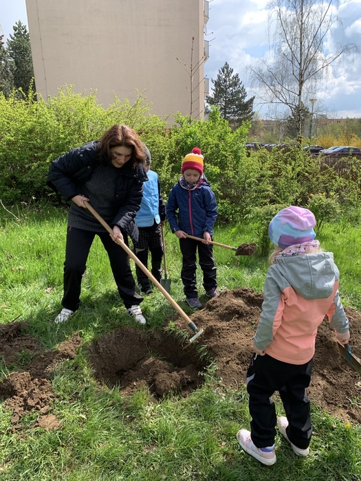 Děkujeme panu Čermákovi ze 3. třídy za vykopání děr pro stromky a keře. Jsme moc rádi za každou pomoc.