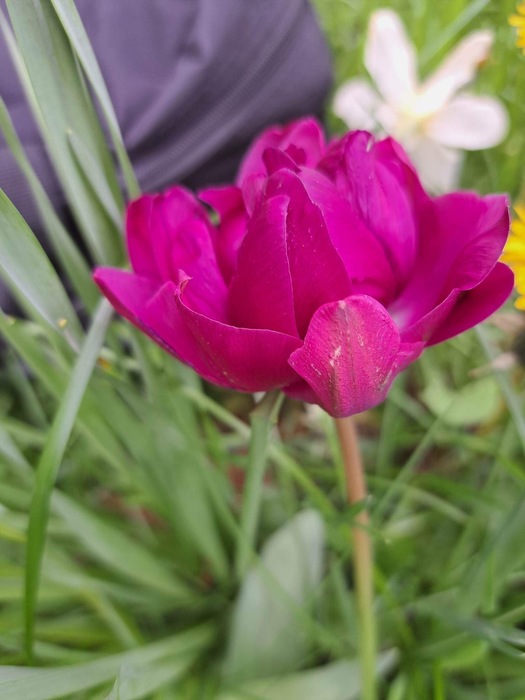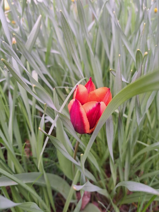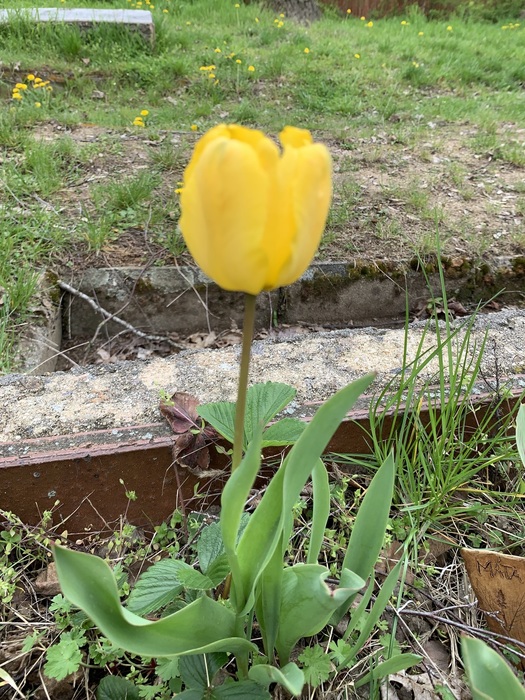 V zahradě krásně kvetou cibuloviny - narcisky a tulipány, kdoulovec, pampelišky, stromy a trávy se barví různými odstíny zelené,rozkvétají různé druhy skalniček.