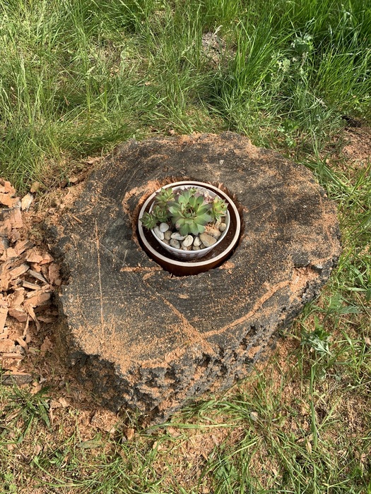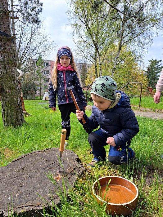 Děkujeme panu Vlasákovi z 1. třídy za vyvrtání díry do pařezu pro umístění pítka pro ptáky hmyz a drobné živočichy, kteří žijí v naší přírodní zahradě.