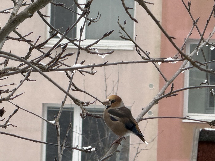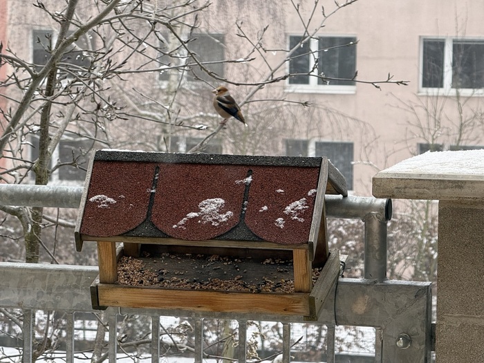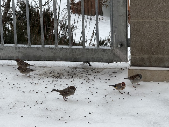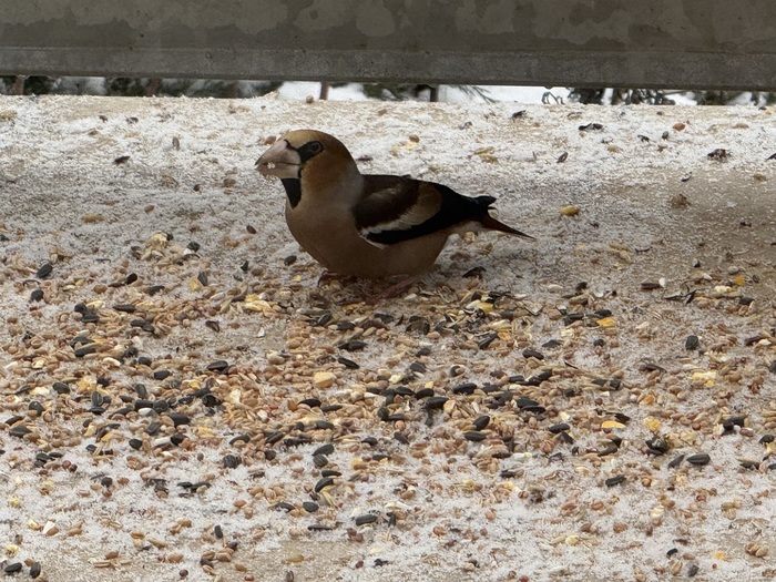 Odměnou za pravidelné dosypávání semínek do krmítka byla vzácná návštěva Dlaska tlustozobého. S dětmi jsme jej zahledli přes okno. Měli jsme z této podívané velkou radost .Dokonce se vcelku dobrém zaběru podařilo ho vyfotit, a tak se můžeme s vámi o návštěvníka krmítka podělit prostřednitcvím několika fotek. Ptáčky u krmítka s dětmi rádi pozorujeme a určujeme druhy. Zajímavostí tohoto ptáčka dlaska je, že svým kuželovitým zobákem dokáže rozlousknout třešňové pecky, švestky, ptačí zob.U našeho krmítka si pochutnal na slunečnicových semenech. Dalším zajímavým ptáčkem byl stehlík, je dole vyfocený pod krmítkem s vrabci.