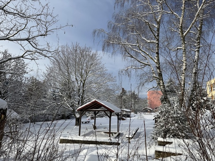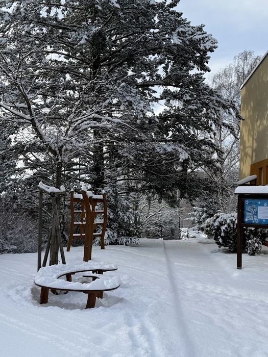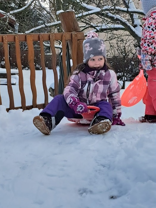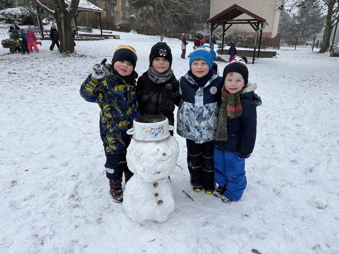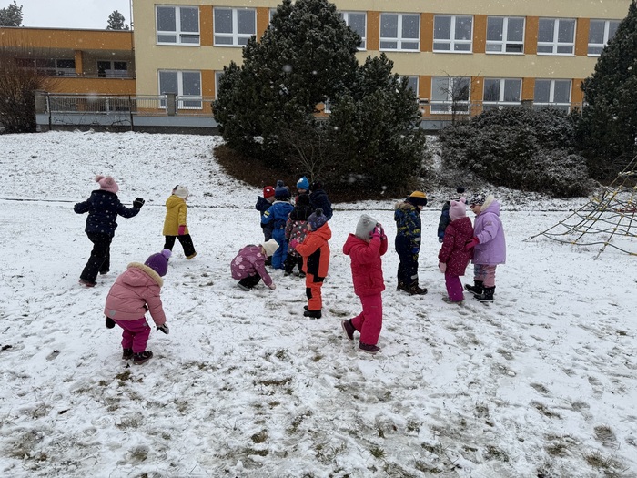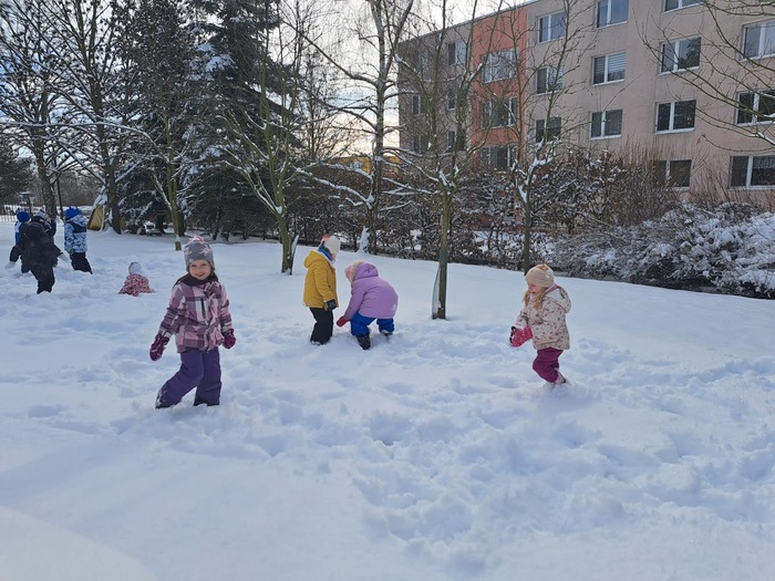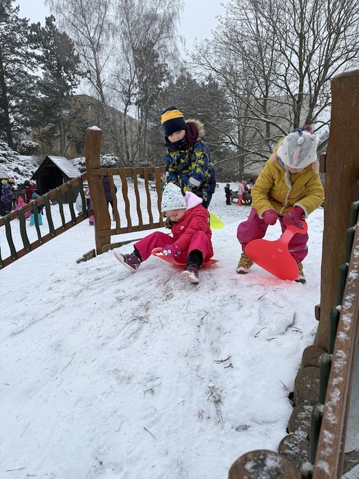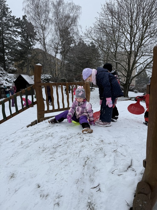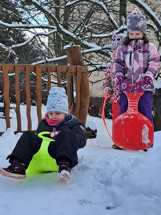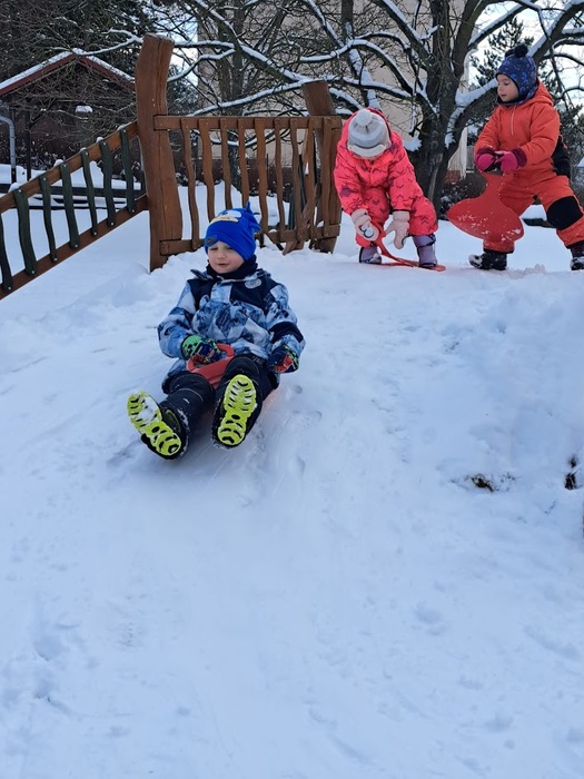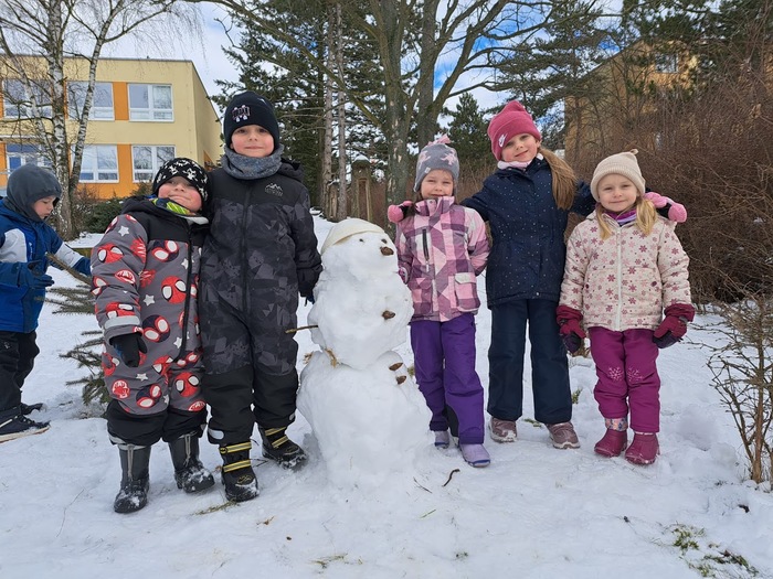 Sněhová nadílka 17.2. 2026 udělala radost zejména dětem. Děti si užívaly čerstvě napadaného sněhu na zahradě plnými doušky, podívejte se s námi:-).