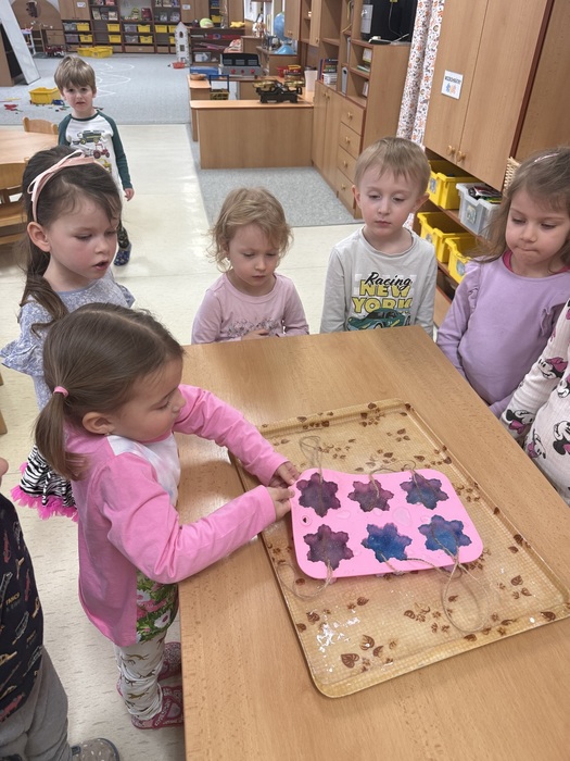 Když mrzlo, zkusili jsme s dětmi vytvořit ledové ozdoby.Použili jsme potravinářské barvivo, šetrné k přírodě.Podívejte, ledové ozdoby se povedly.