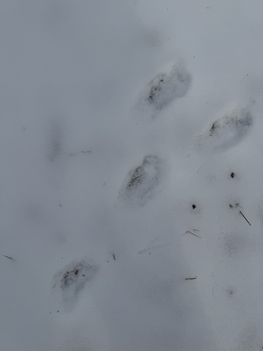 Obyvatelé přírodní zahrady zanechávají v zimě ve sněhu stopy. Stopu zajíce jsme našli s dětmi také na začátku února.