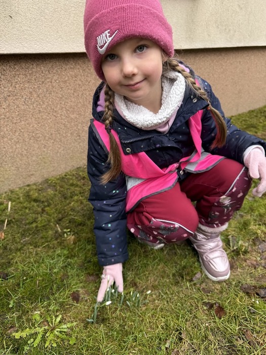 A za týden se změnilo jako mávnutí kouzelného proutku počasí a 24.2.2026 se objevily v okolí školky první sněženky.