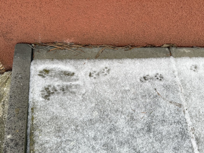 S dětmi jsme sledovali stopy ve sněhu - ( kočky, kosa, veverky, zajíce.).