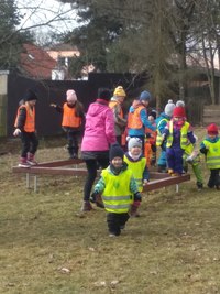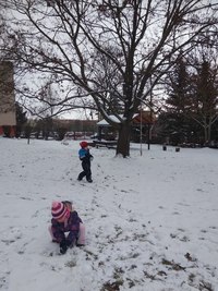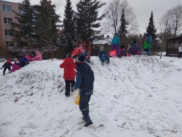 Děti si užily sněhu na zahradě. Menší kopeček jim stačil, aby se svezly na lopatách a napadaného sněhu využily k volným hrám. Pozorovali jsme s dětmi stopy ve sněhu a děti se je učily poznávat. Kontrolovali jsme pravidelně krmítka pro ptáčky a přisypávali slunečnicová semena do krmítek.